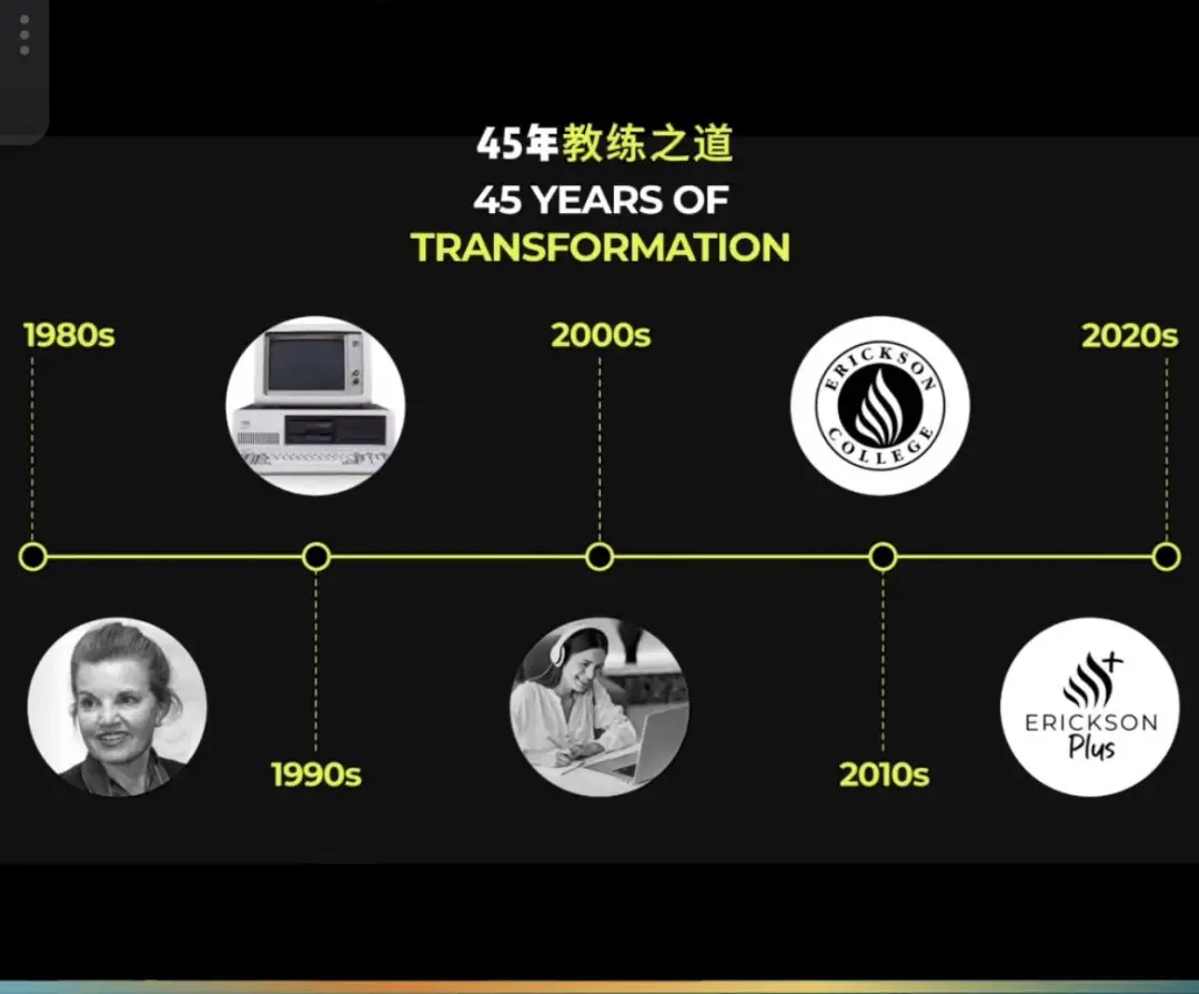 埃里克森成立于1980年,46年在教练行业专注于教练式解决方案,以玛丽莲老师独创的系统性及实用性培养体系引领行业发展。